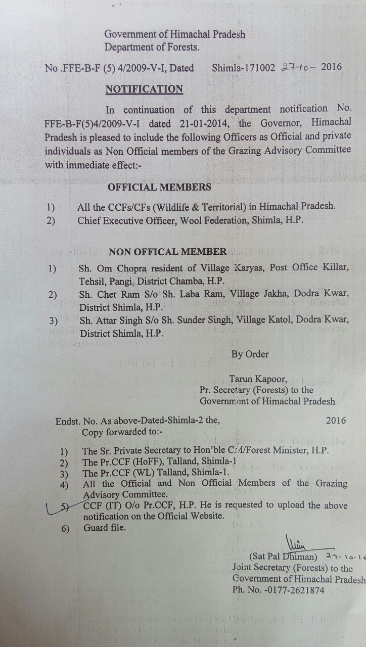 - HP Notification regarding reconstitute of GRazing Advisory Committee dated 23-03-2021